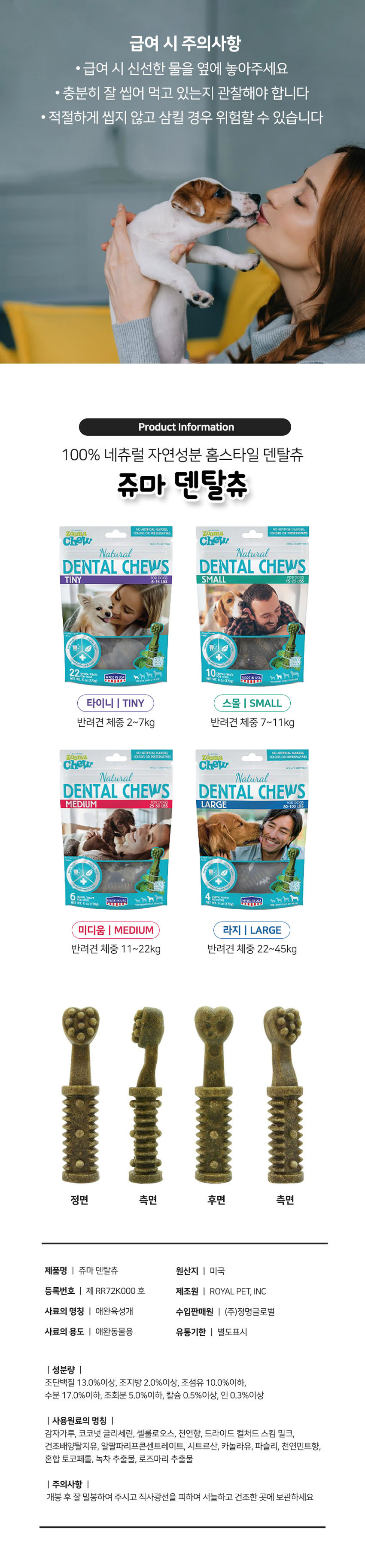 쥬마 덴탈츄 천연성분 치석제거 강아지 덴탈껌 타이니 22P 170g