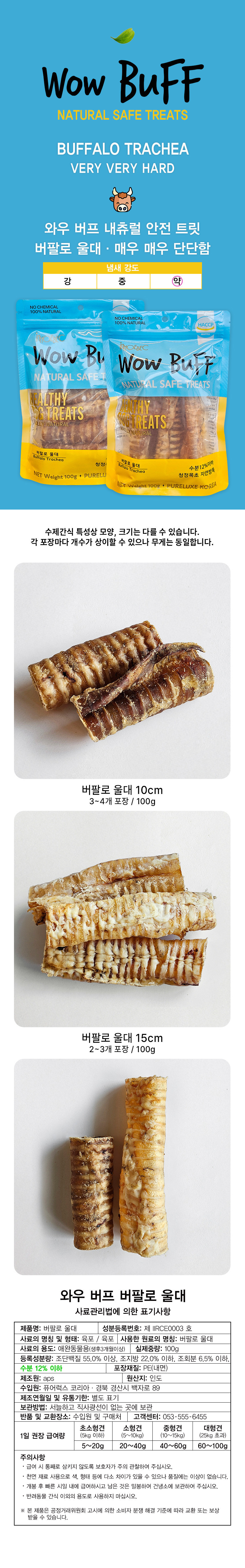 인호벡 냉장생육 저온건조 천연간식 와우버프 버팔로 울대 10cm 100g