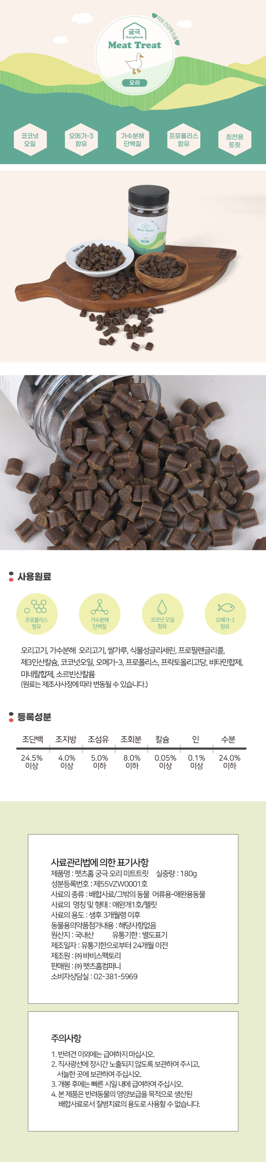 궁극 미트트릿 기능성간식 피부건강 오리 180g
