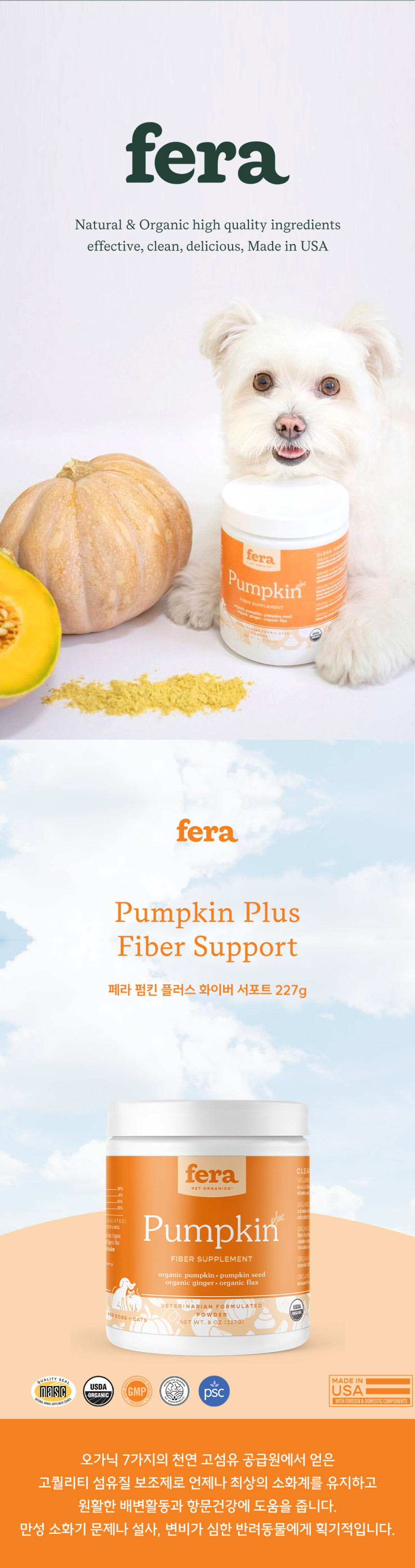 페라 펌킨플러스 화이버 서포트 식이섬유 영양제 227g